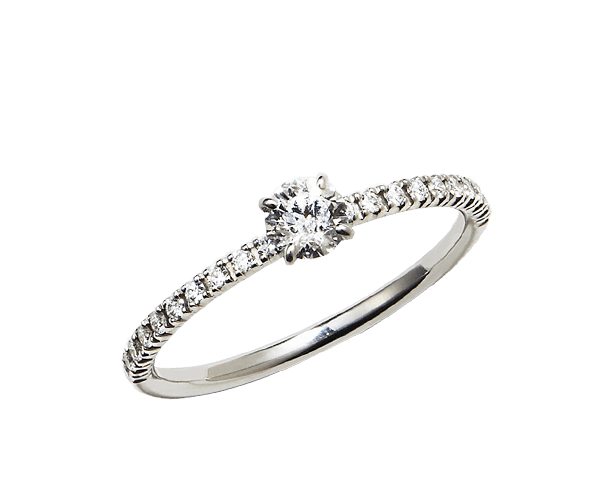 華奢なアームに敷き詰めたハーフエタニティがベースで、メインとなるブリリアントカットのダイヤモンドも小ぶりで上品。それをパヴェダイヤモンドが彩ることで、可憐な女性像をほうふつとさせるデザインに。ちなみにモデル名の「エタンセル」はフランス語で”ひらめく輝き”の意味。さりげなく反射する、ピュアなきらめきを楽しんで。